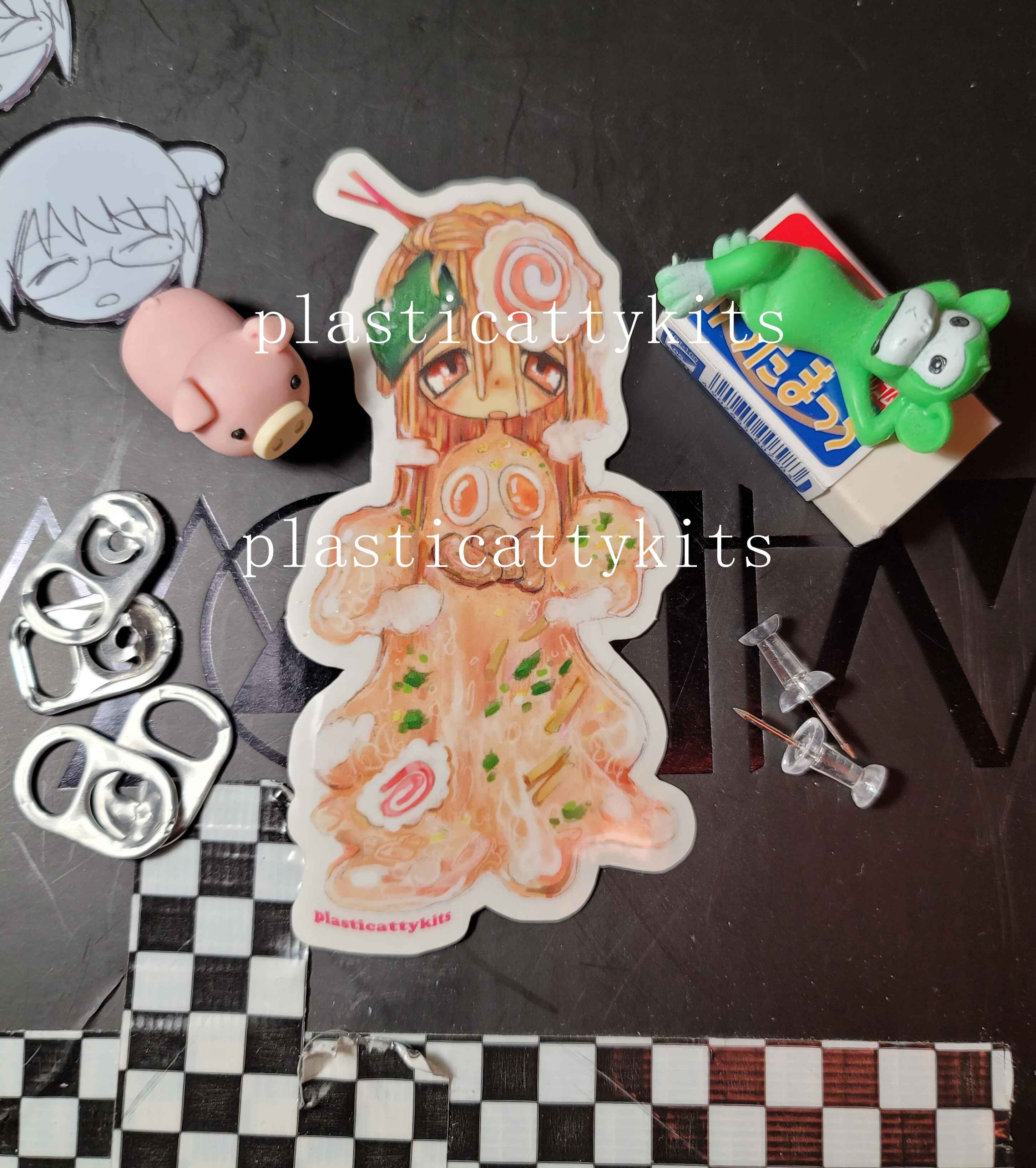 ramen girl everyone's favorite!π pics for size! ---------- 2.4" wide x 4.8" length clear sticker weatherproof, glossy, and clear cutline
